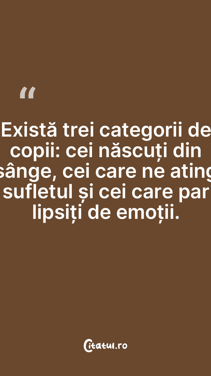 Există trei categorii de copii: cei născuți din sânge, cei care ne ating sufletul și cei care par lipsiți de emoții.