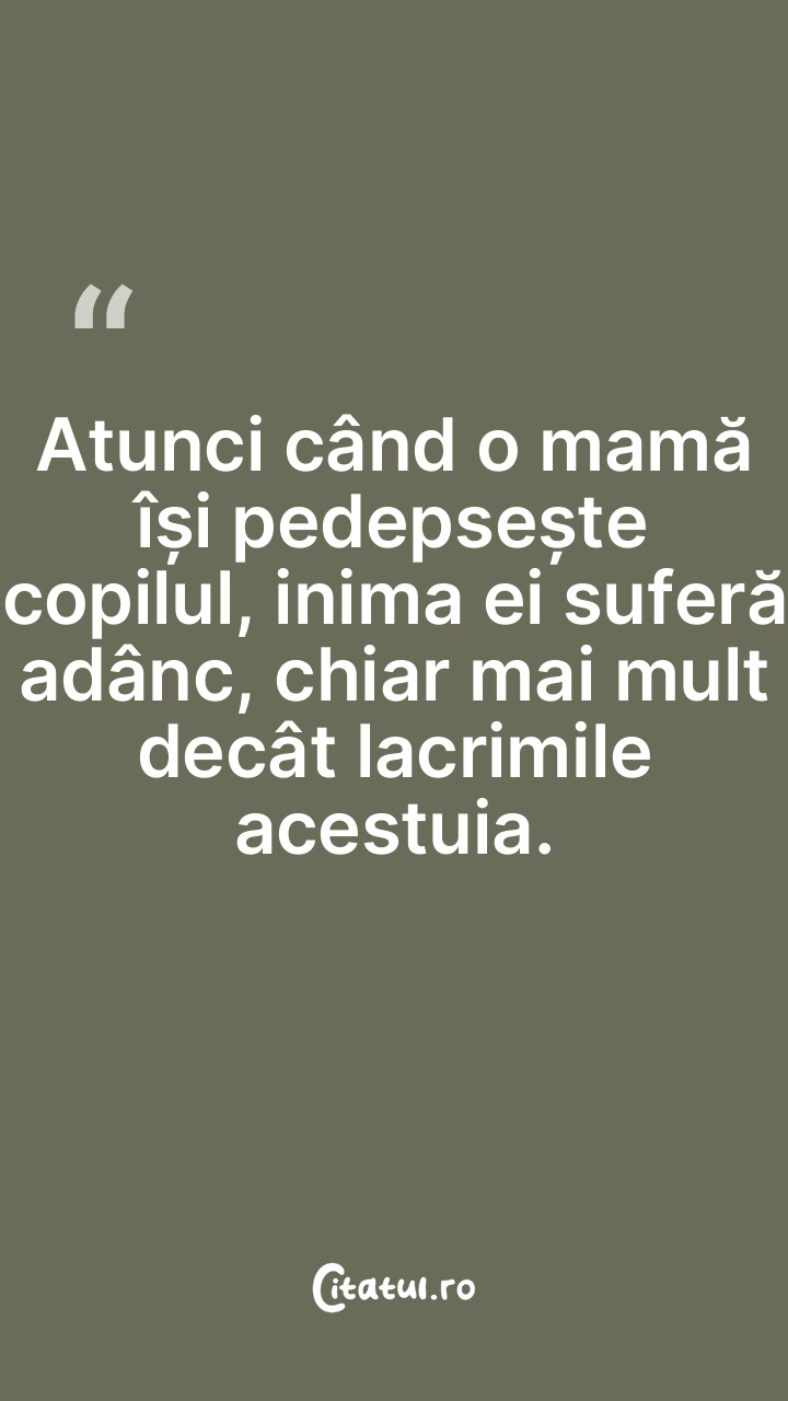 Atunci când o mamă își pedepsește copilul, inima ei suferă adânc, chiar mai mult decât lacrimile acestuia.