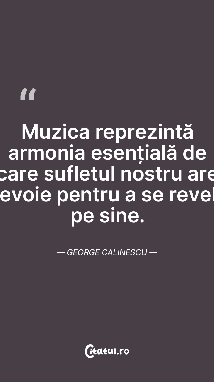Muzica reprezintă armonia esențială de care sufletul nostru are nevoie pentru a se revela pe sine. George Calinescu