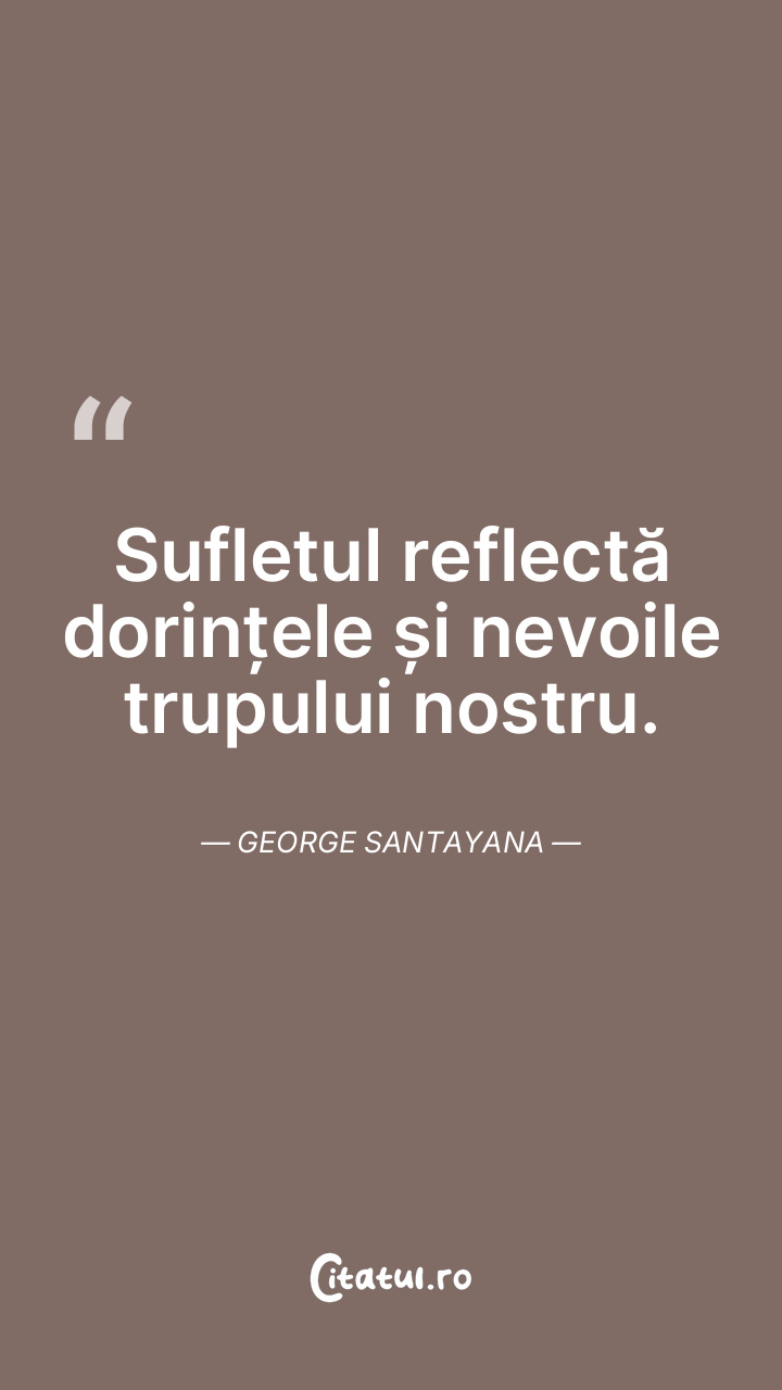 Sufletul reflectă dorințele și nevoile trupului nostru. George Santayana