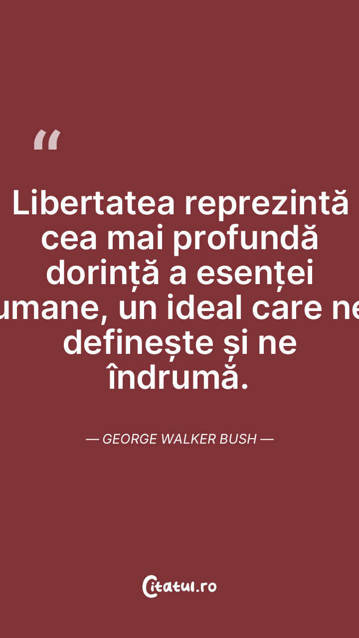 Libertatea reprezintă cea mai profundă dorință a esenței umane, un ideal care ne definește și ne îndrumă. George Walker Bush