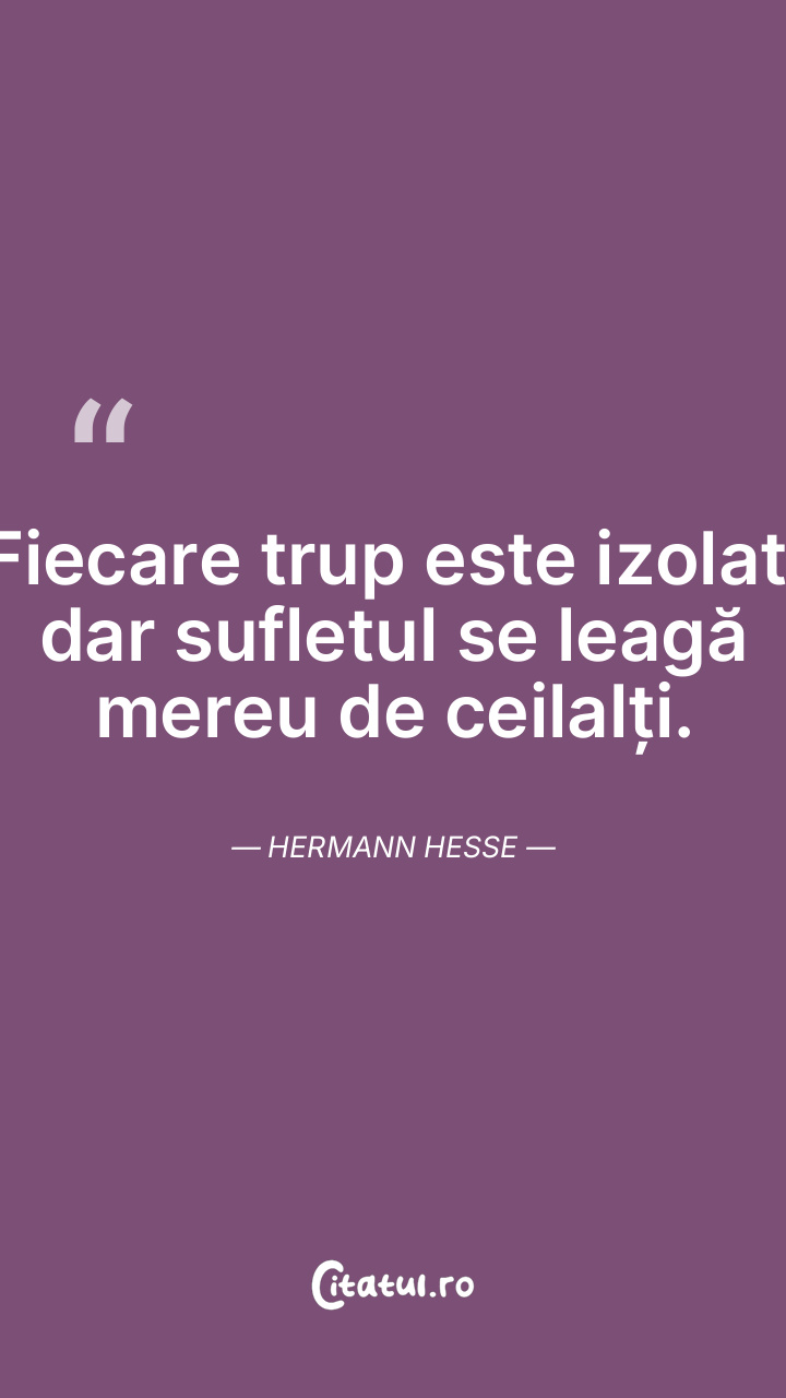 Fiecare trup este izolat, dar sufletul se leagă mereu de ceilalți. Hermann Hesse