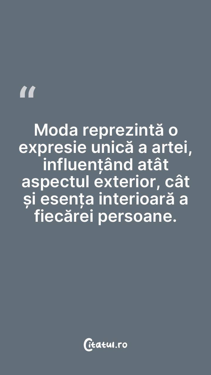 Moda reprezintă o expresie unică a artei, influențând atât aspectul exterior, cât și esența interioară a fiecărei persoane.
