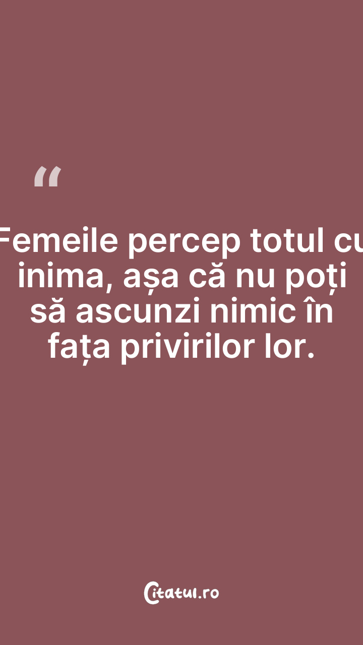 Femeile percep totul cu inima, așa că nu poți să ascunzi nimic în fața privirilor lor.