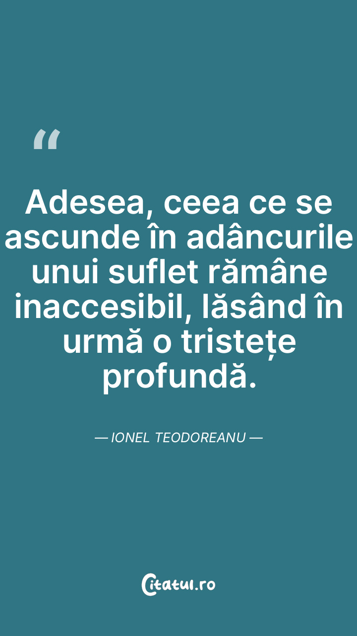 Adesea, ceea ce se ascunde în adâncurile unui suflet rămâne inaccesibil, lăsând în urmă o tristețe profundă. Ionel Teodoreanu