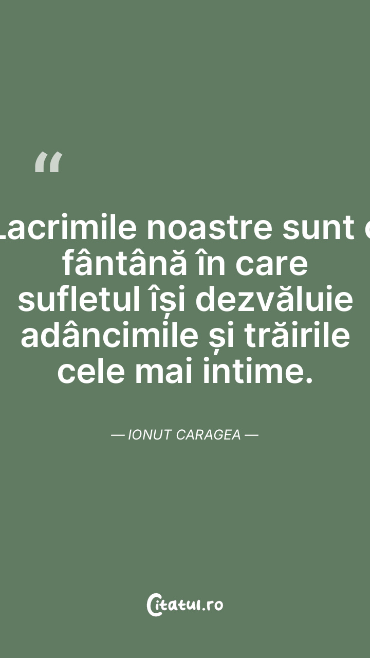 Lacrimile noastre sunt o fântână în care sufletul își dezvăluie adâncimile și trăirile cele mai intime. Ionut Caragea