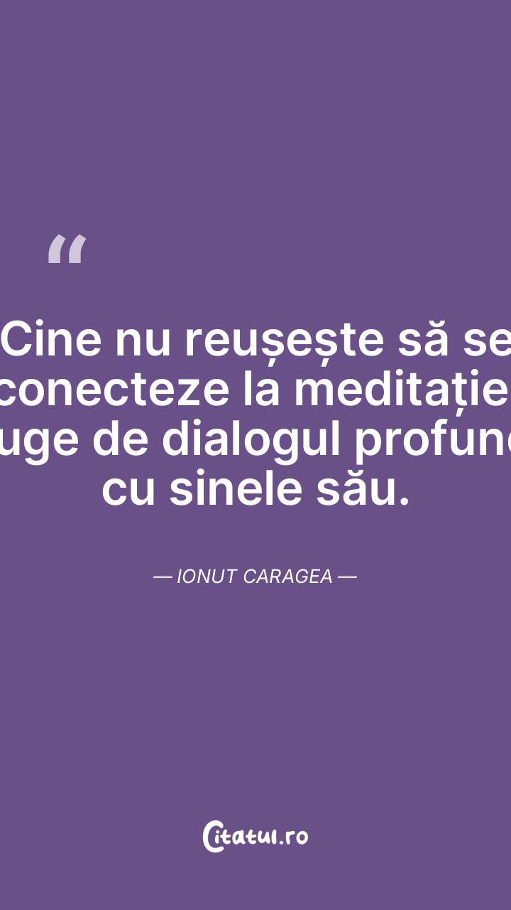 Cine nu reușește să se conecteze la meditație, fuge de dialogul profund cu sinele său. Ionut Caragea