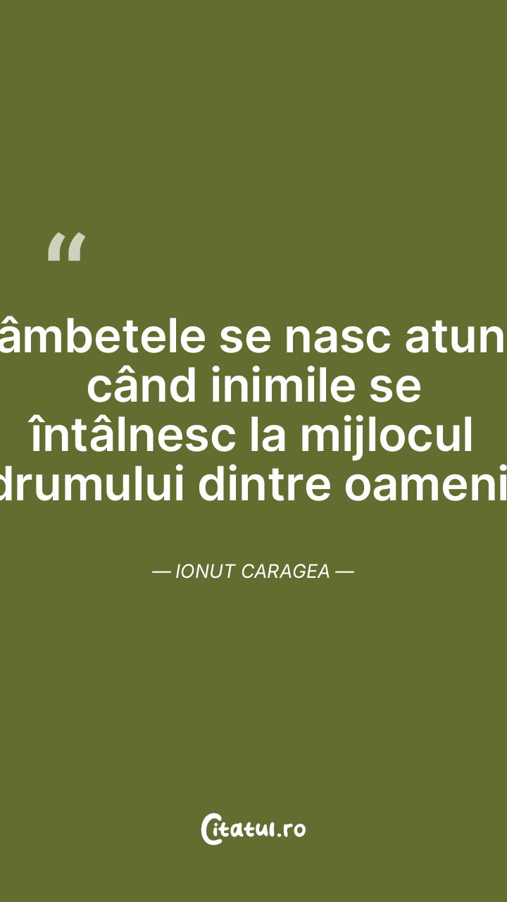 Zâmbetele se nasc atunci când inimile se întâlnesc la mijlocul drumului dintre oameni. Ionut Caragea
