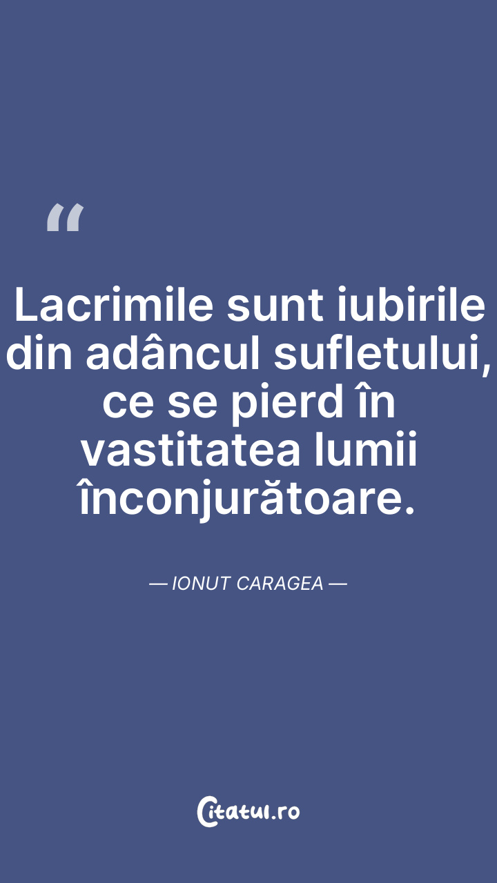 Lacrimile sunt iubirile din adâncul sufletului, ce se pierd în vastitatea lumii înconjurătoare. Ionut Caragea