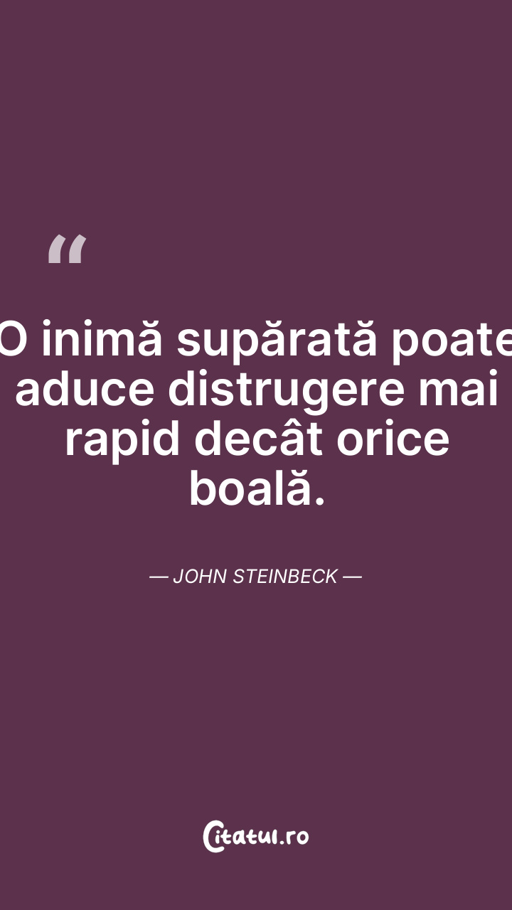 O inimă supărată poate aduce distrugere mai rapid decât orice boală. John Steinbeck