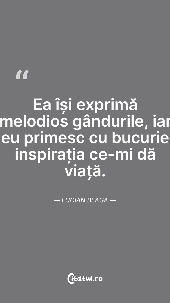Ea își exprimă melodios gândurile, iar eu primesc cu bucurie inspirația ce-mi dă viață. Lucian Blaga