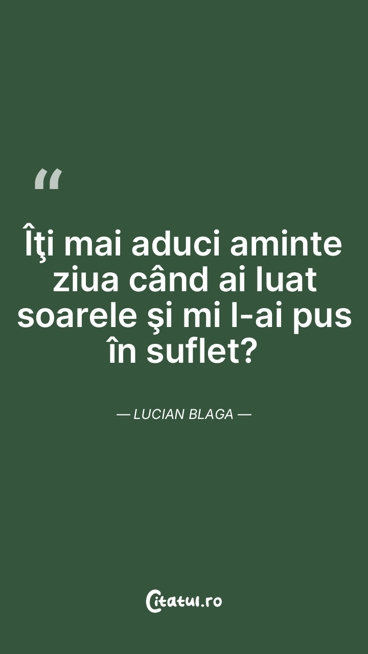 Îţi mai aduci aminte ziua când ai luat soarele şi mi l-ai pus în suflet? Lucian Blaga