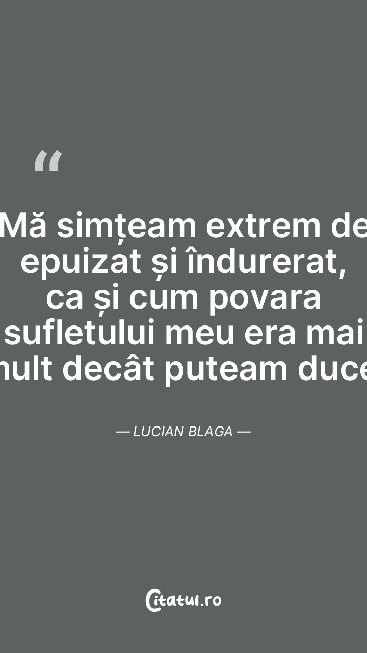 Mă simțeam extrem de epuizat și îndurerat, ca și cum povara sufletului meu era mai mult decât puteam duce. Lucian Blaga