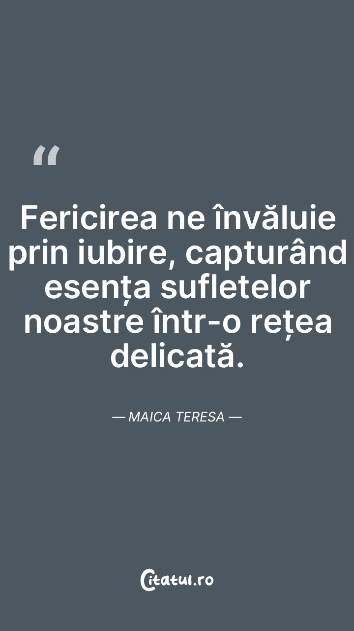 Fericirea ne învăluie prin iubire, capturând esența sufletelor noastre într-o rețea delicată. Maica Teresa