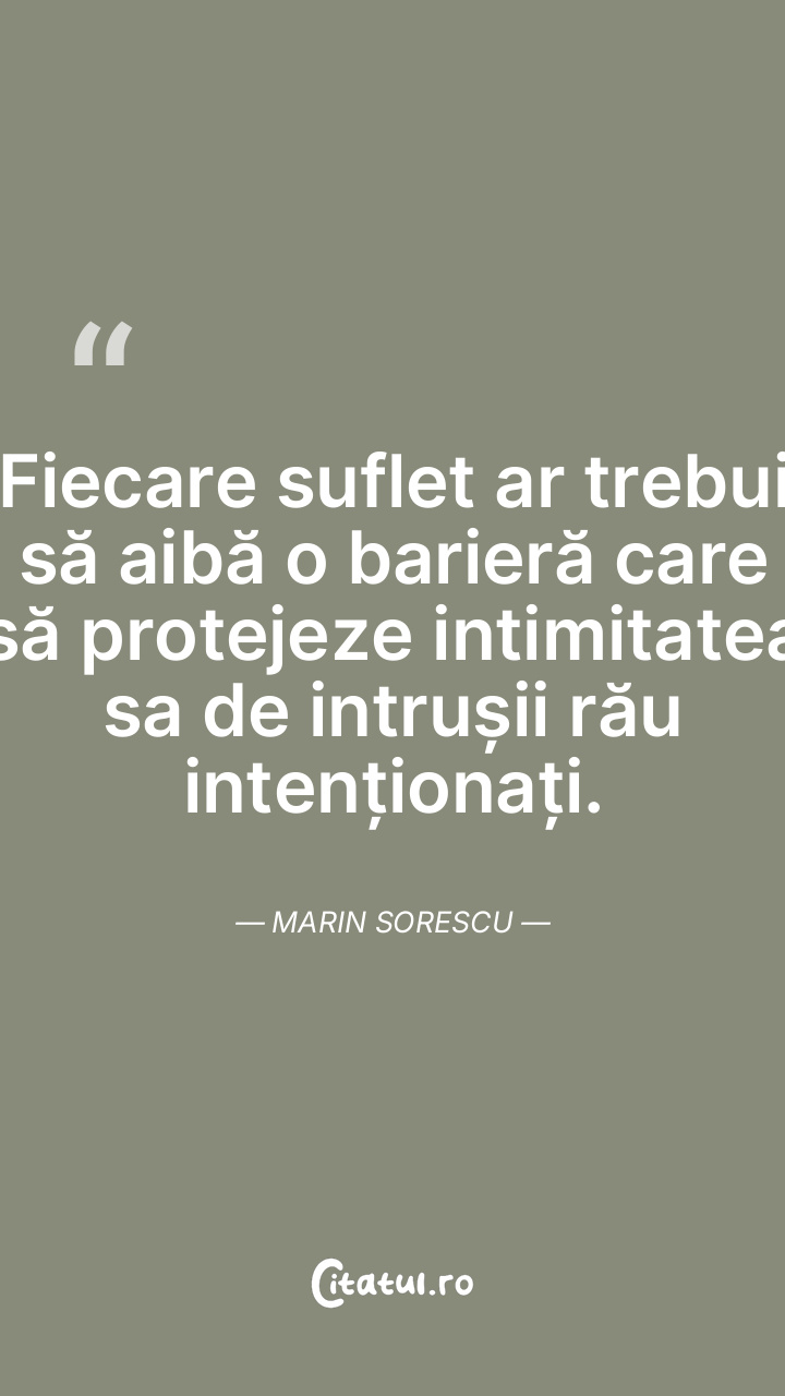 Fiecare suflet ar trebui să aibă o barieră care să protejeze intimitatea sa de intrușii rău intenționați. Marin Sorescu