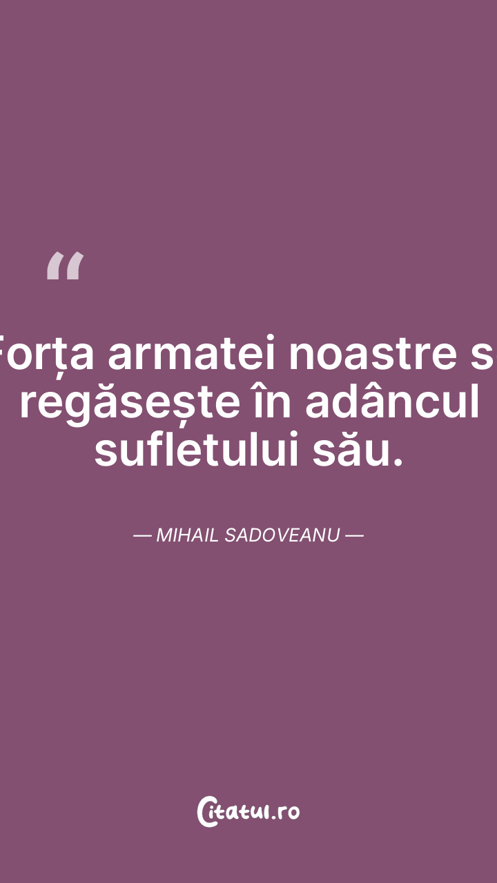 Forța armatei noastre se regăsește în adâncul sufletului său. Mihail Sadoveanu