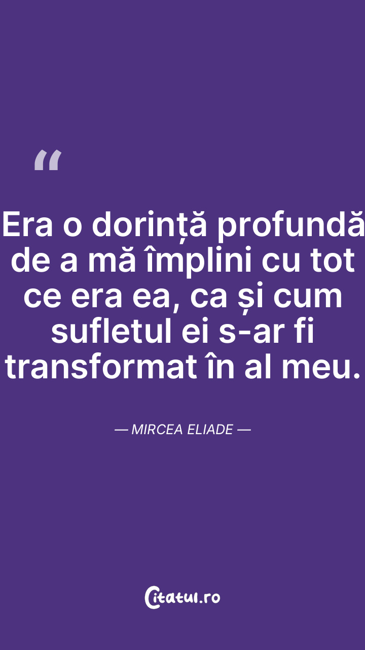 Era o dorință profundă de a mă împlini cu tot ce era ea, ca și cum sufletul ei s-ar fi transformat în al meu. Mircea Eliade