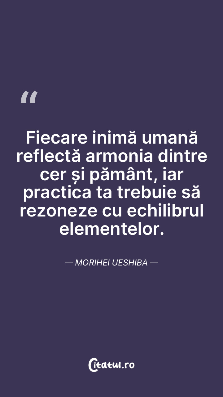 Fiecare inimă umană reflectă armonia dintre cer și pământ, iar practica ta trebuie să rezoneze cu echilibrul elementelor. Morihei Ueshiba