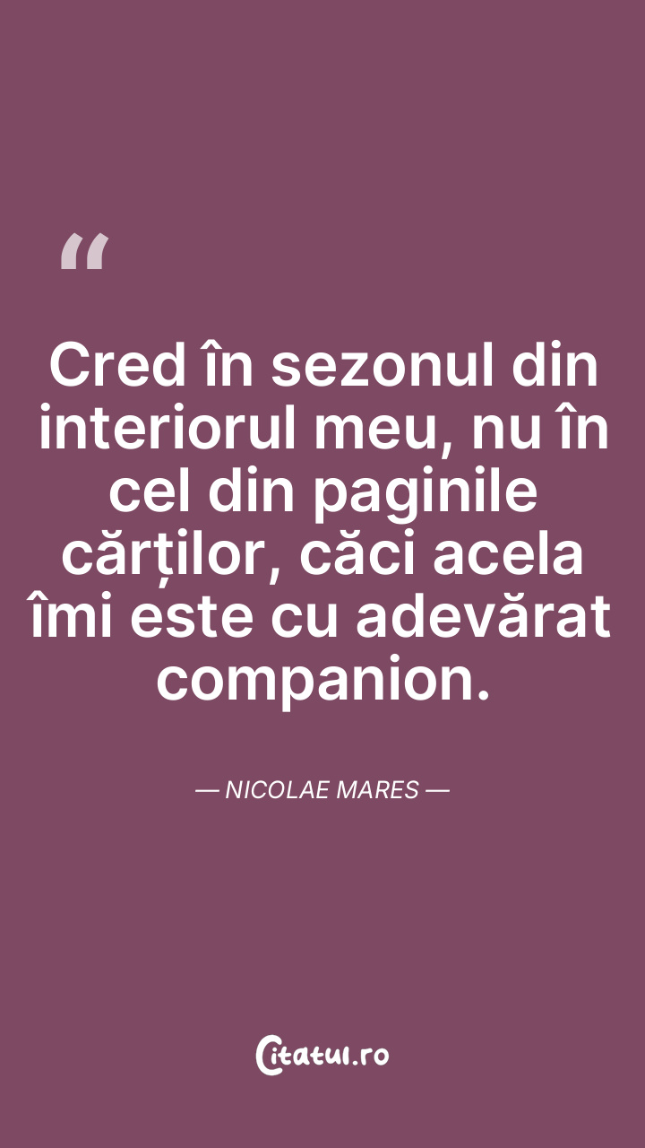 Cred în sezonul din interiorul meu, nu în cel din paginile cărților, căci acela îmi este cu adevărat companion. Nicolae Mares