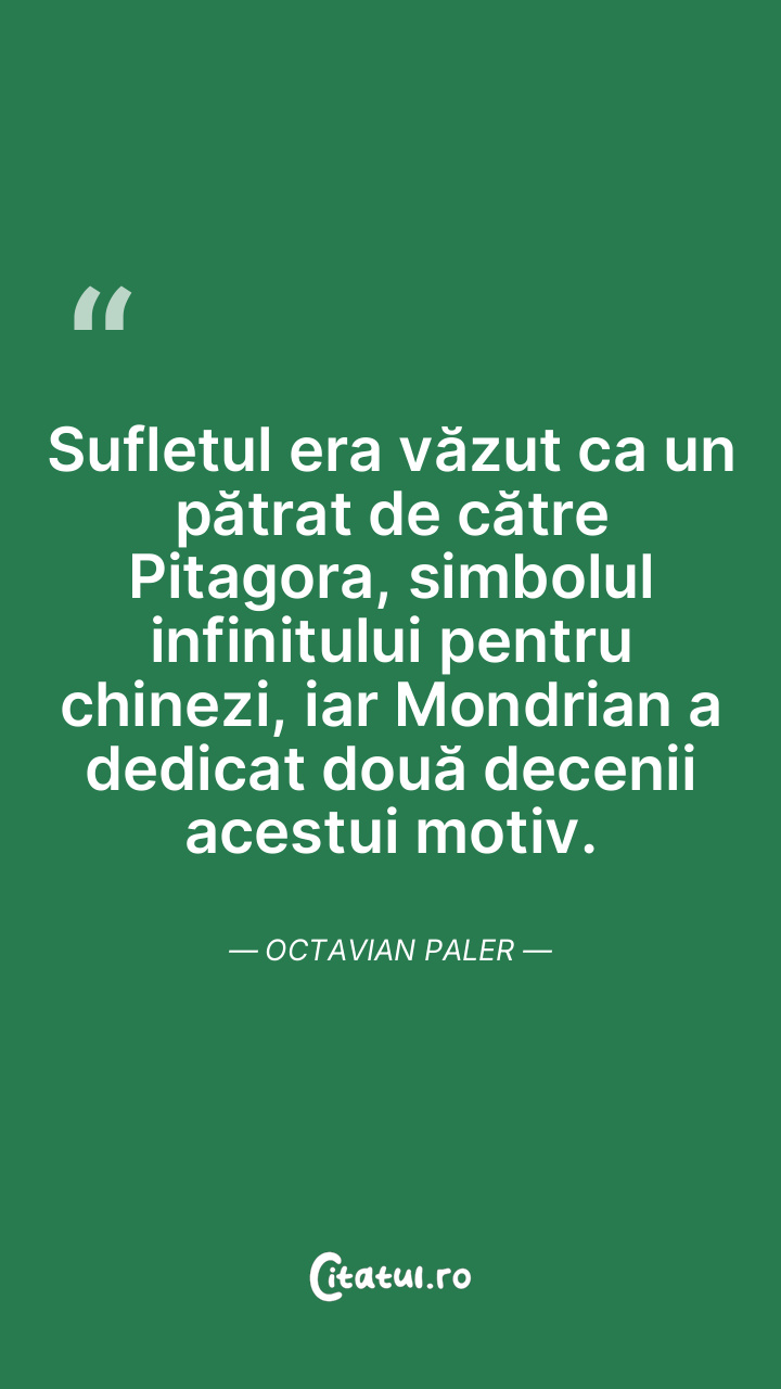 Sufletul era văzut ca un pătrat de către Pitagora, simbolul infinitului pentru chinezi, iar Mondrian a dedicat două decenii acestui motiv. Octavian Paler