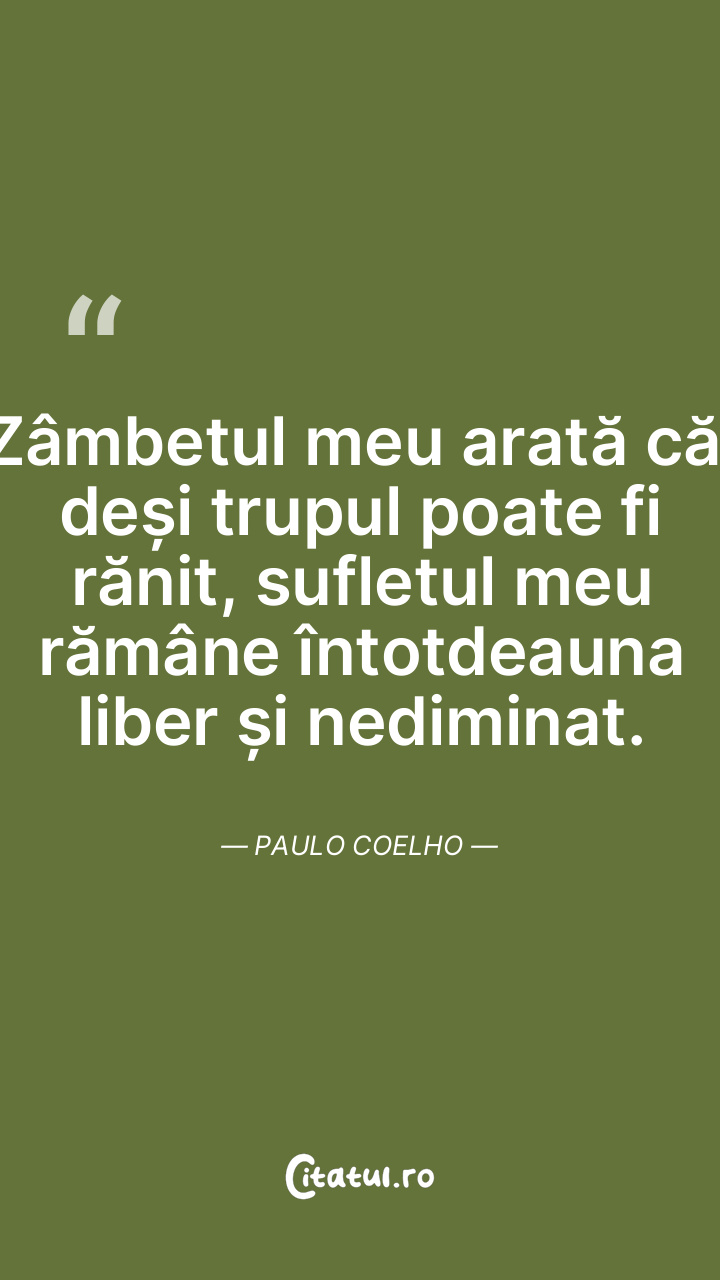 Zâmbetul meu arată că, deși trupul poate fi rănit, sufletul meu rămâne întotdeauna liber și nediminat. Paulo Coelho