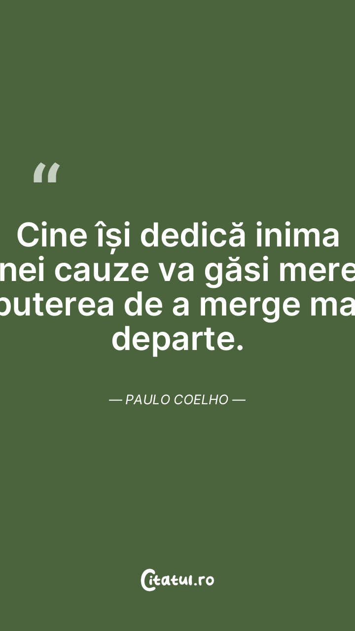 Cine își dedică inima unei cauze va găsi mereu puterea de a merge mai departe. Paulo Coelho