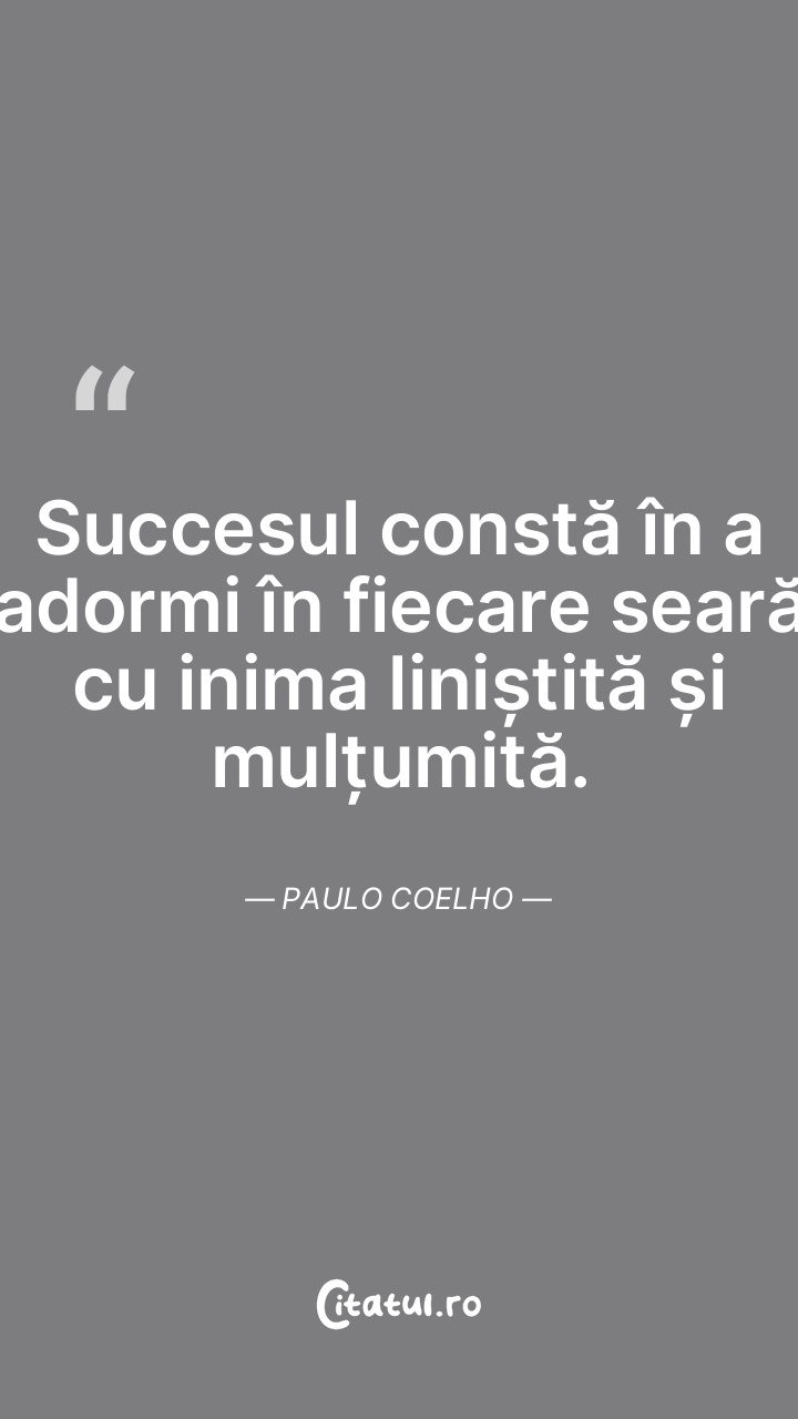 Succesul constă în a adormi în fiecare seară cu inima liniștită și mulțumită. Paulo Coelho