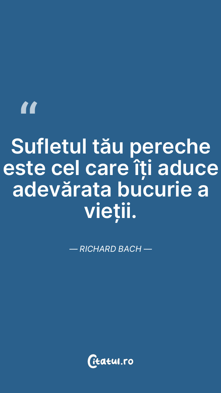 Sufletul tău pereche este cel care îți aduce adevărata bucurie a vieții. Richard Bach