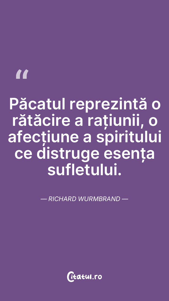Păcatul reprezintă o rătăcire a rațiunii, o afecțiune a spiritului ce distruge esența sufletului. Richard Wurmbrand