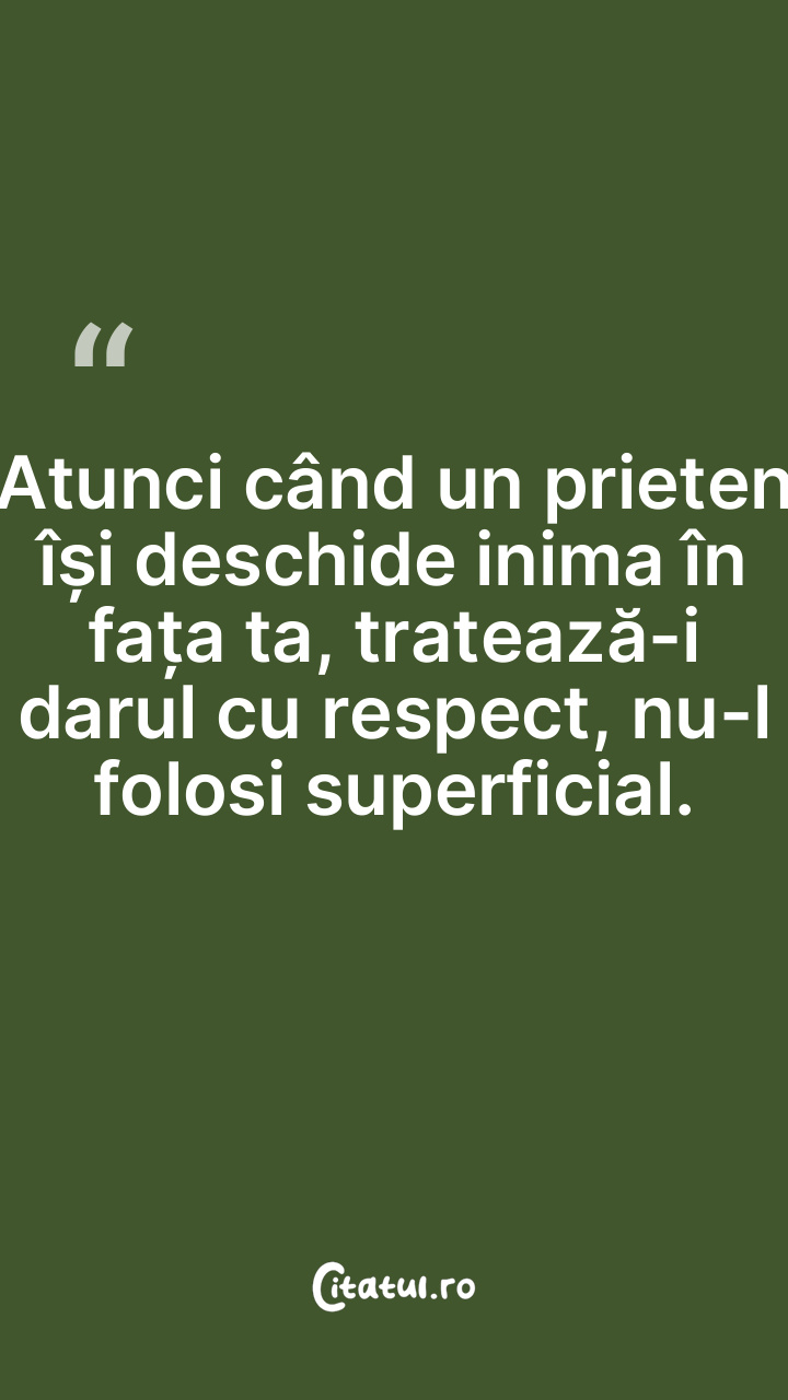 Atunci când un prieten își deschide inima în fața ta, tratează-i darul cu respect, nu-l folosi superficial.
