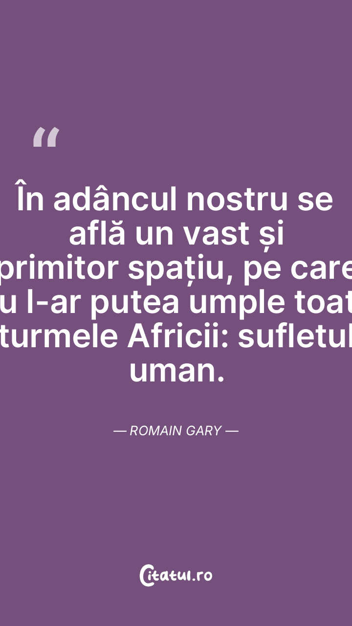 În adâncul nostru se află un vast și primitor spațiu, pe care nu l-ar putea umple toate turmele Africii: sufletul uman. Romain Gary