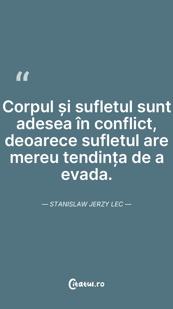 Corpul și sufletul sunt adesea în conflict, deoarece sufletul are mereu tendința de a evada. Stanislaw Jerzy Lec