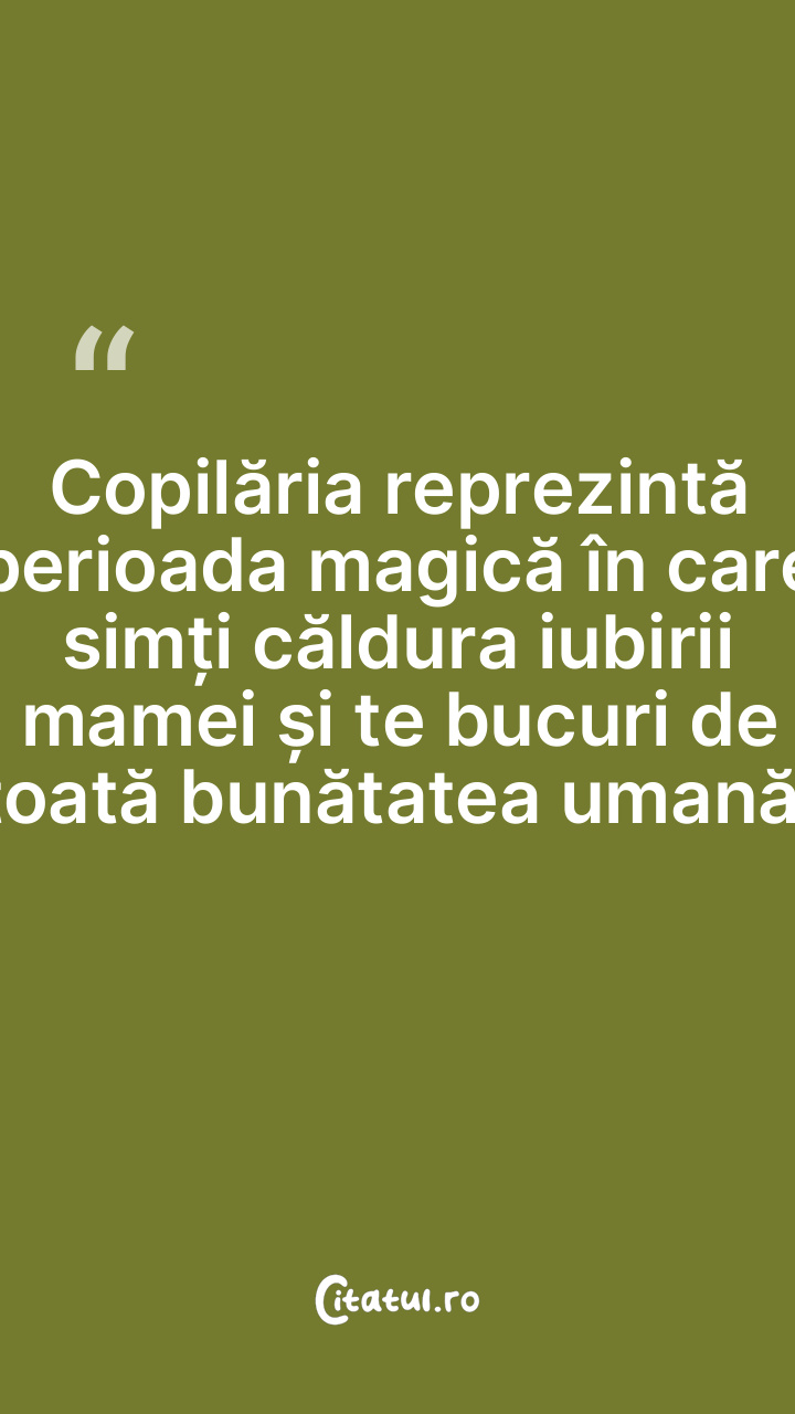 Copilăria reprezintă perioada magică în care simți căldura iubirii mamei și te bucuri de toată bunătatea umană.