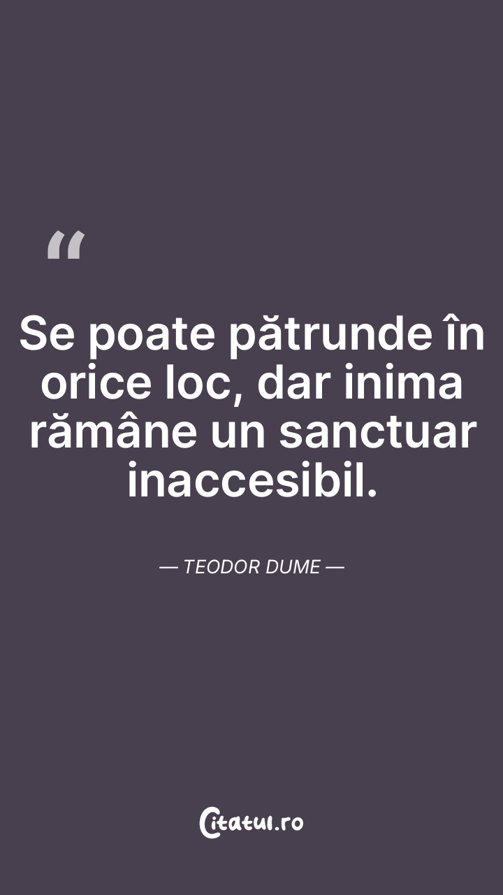 Se poate pătrunde în orice loc, dar inima rămâne un sanctuar inaccesibil. Teodor Dume
