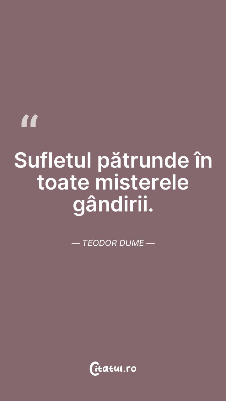Sufletul pătrunde în toate misterele gândirii. Teodor Dume