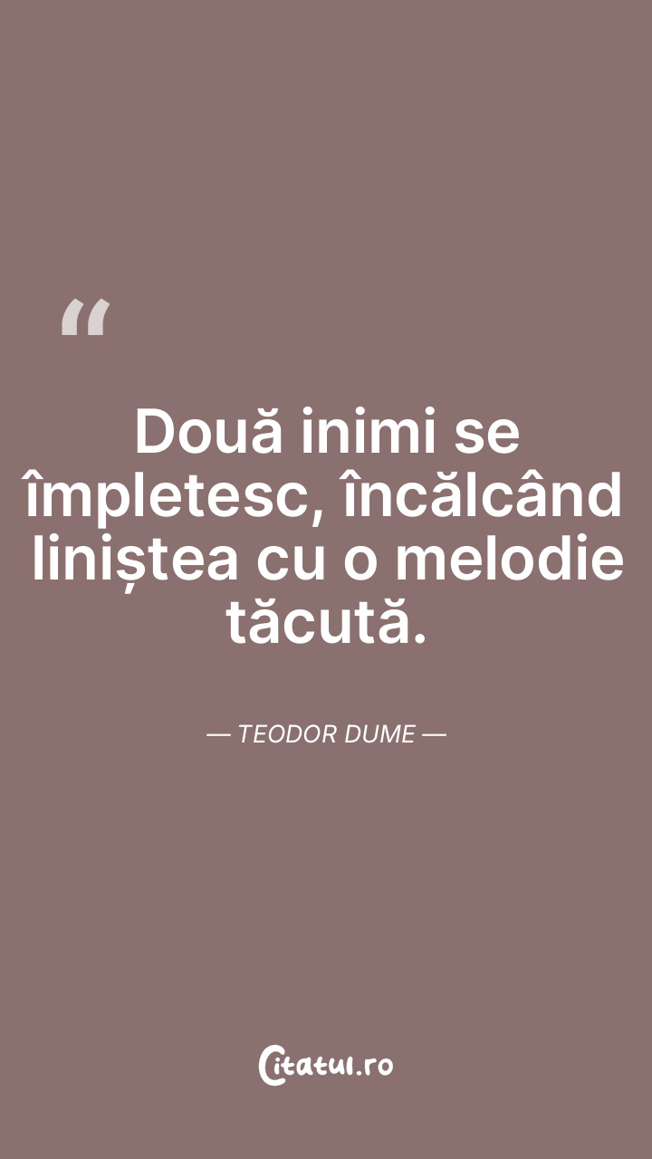 Două inimi se împletesc, încălcând liniștea cu o melodie tăcută. Teodor Dume