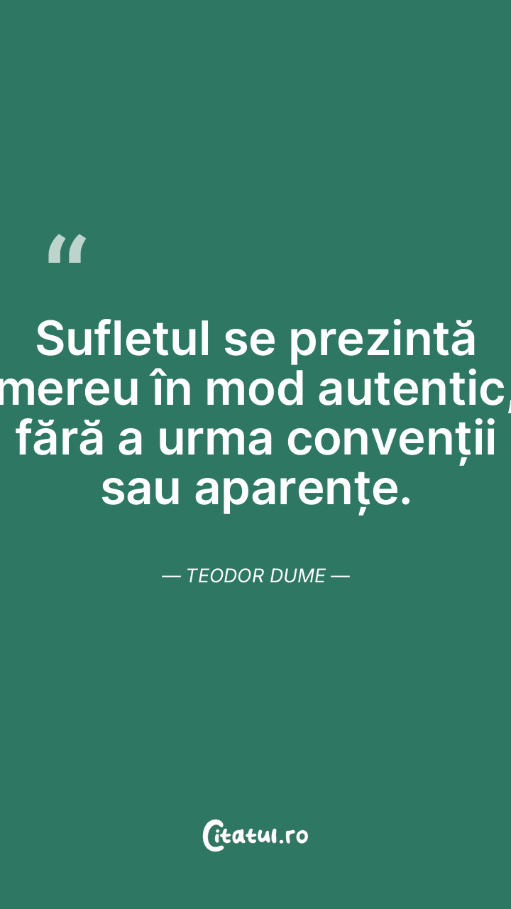 Sufletul se prezintă mereu în mod autentic, fără a urma convenții sau aparențe. Teodor Dume