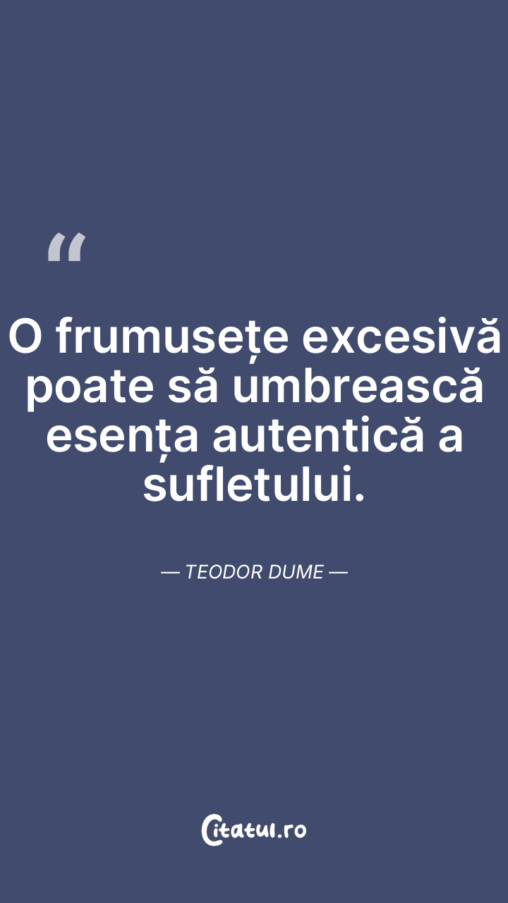 O frumusețe excesivă poate să umbrească esența autentică a sufletului. Teodor Dume