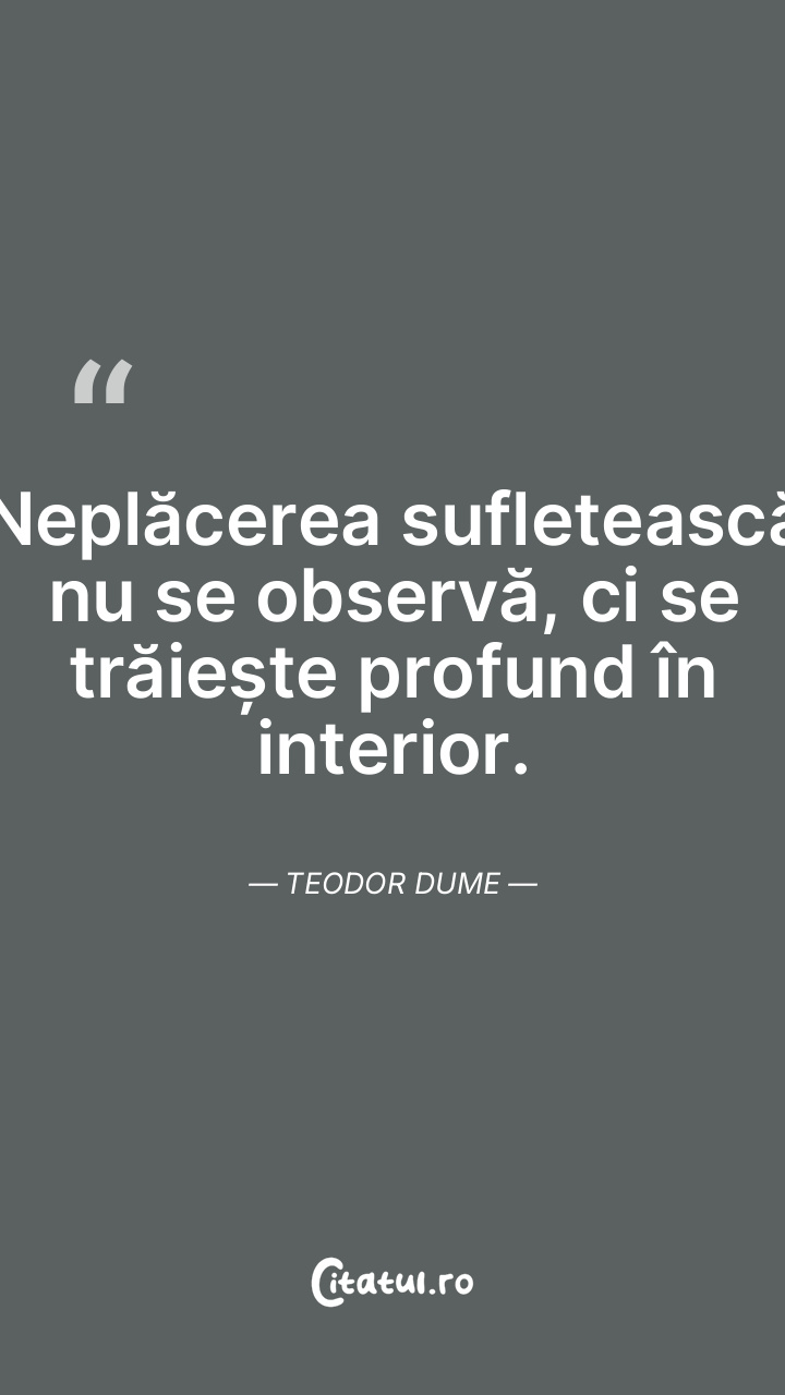 Neplăcerea sufletească nu se observă, ci se trăiește profund în interior. Teodor Dume