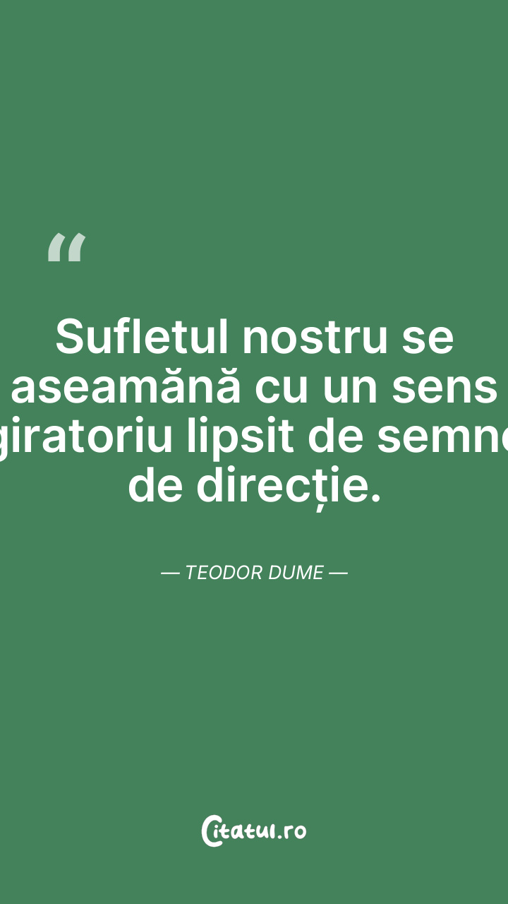 Sufletul nostru se aseamănă cu un sens giratoriu lipsit de semne de direcție. Teodor Dume