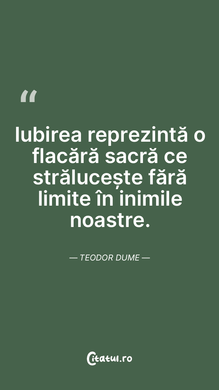 Iubirea reprezintă o flacără sacră ce strălucește fără limite în inimile noastre. Teodor Dume