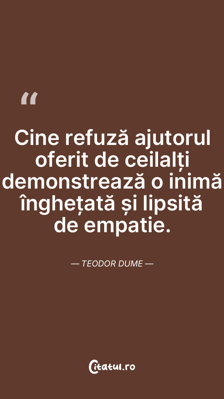 Cine refuză ajutorul oferit de ceilalți demonstrează o inimă înghețată și lipsită de empatie. Teodor Dume