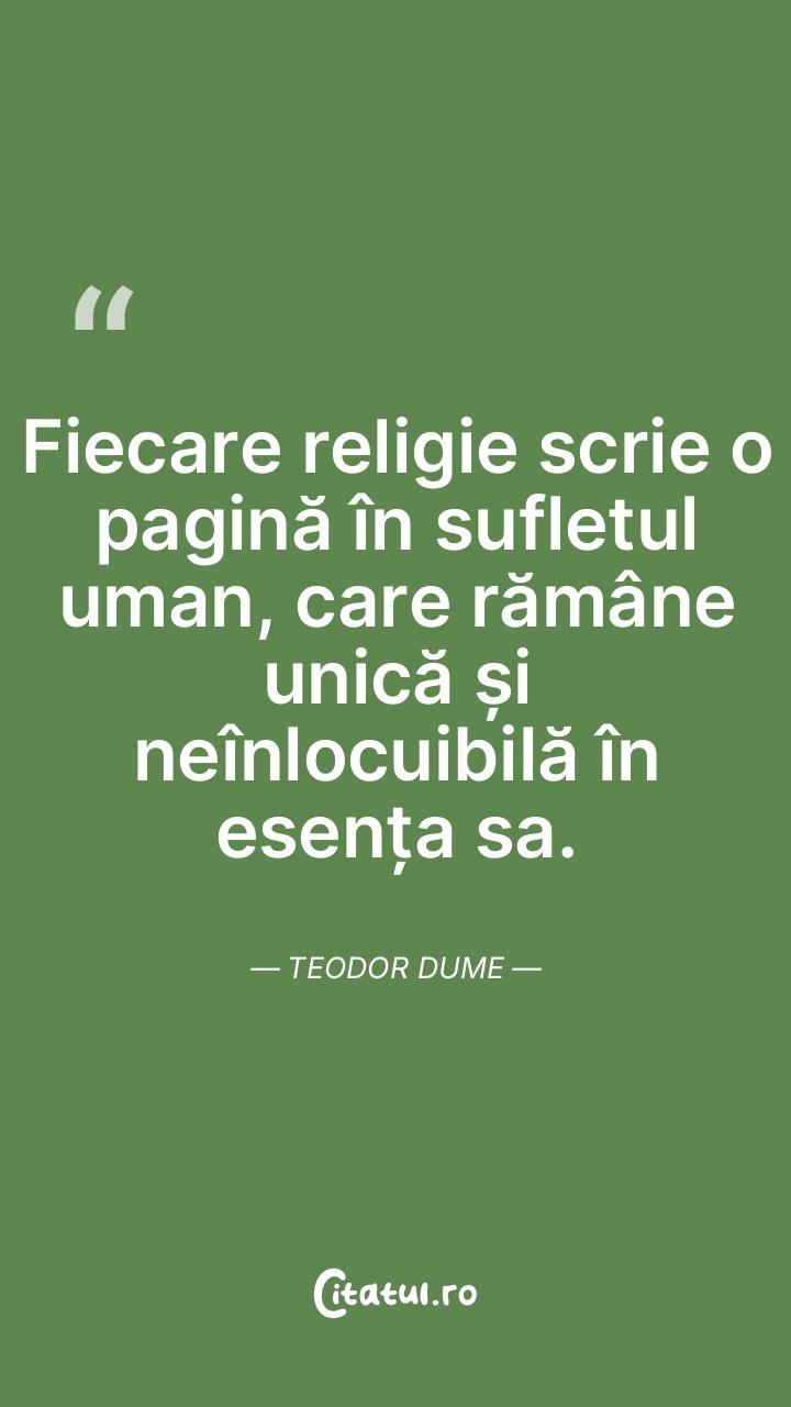 Fiecare religie scrie o pagină în sufletul uman, care rămâne unică și neînlocuibilă în esența sa. Teodor Dume