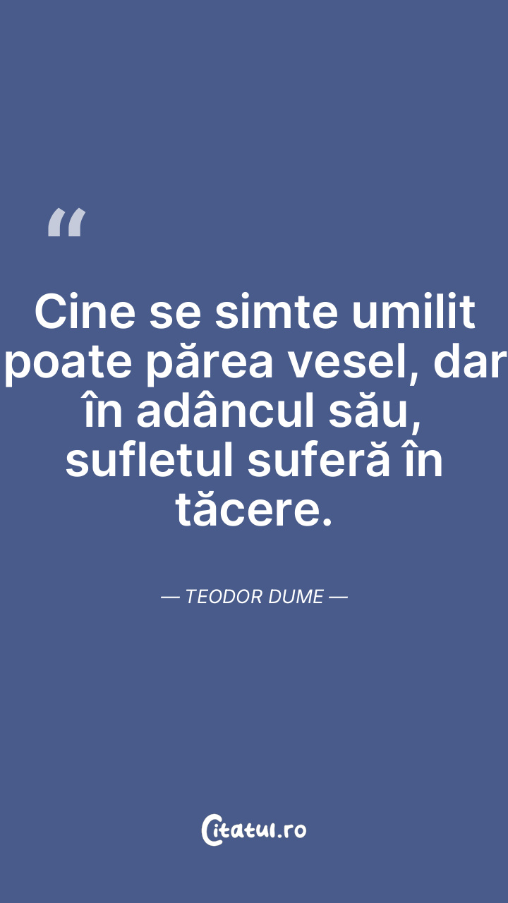 Cine se simte umilit poate părea vesel, dar în adâncul său, sufletul suferă în tăcere. Teodor Dume