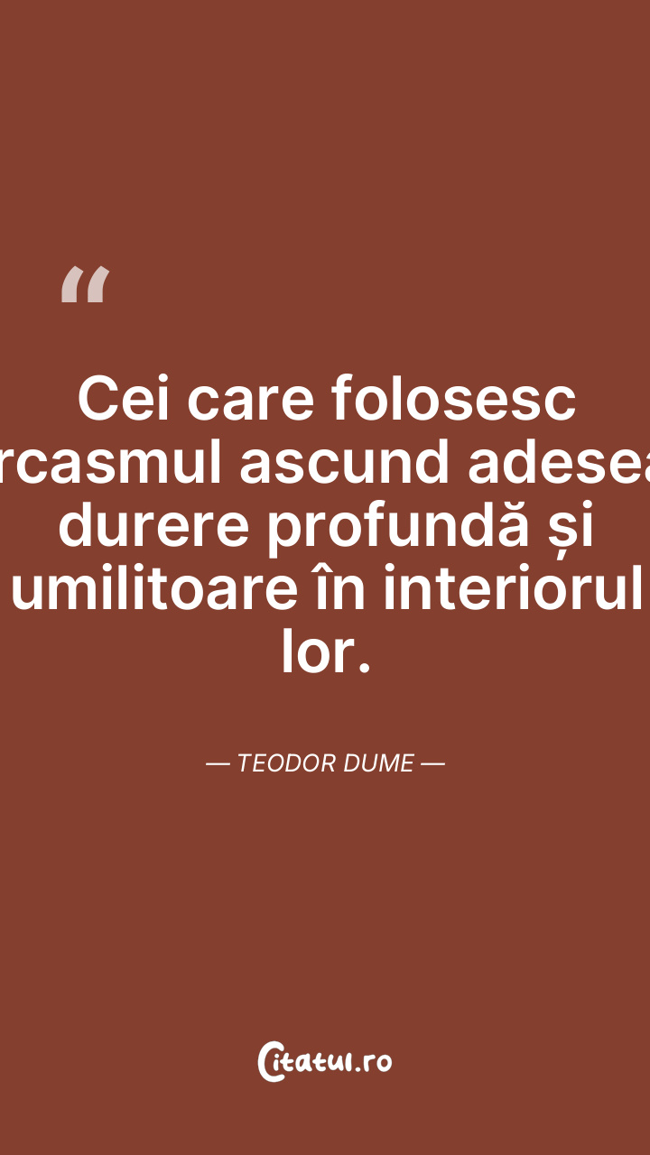 Cei care folosesc sarcasmul ascund adesea o durere profundă și umilitoare în interiorul lor. Teodor Dume