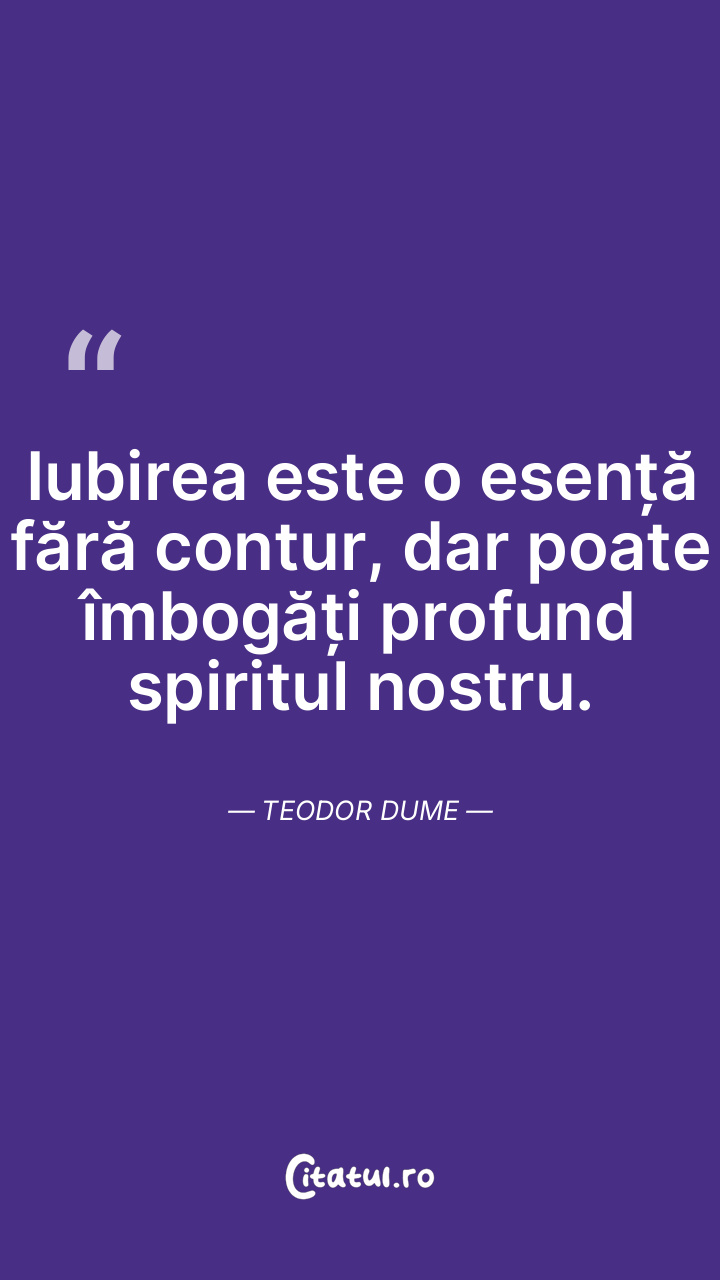 Iubirea este o esență fără contur, dar poate îmbogăți profund spiritul nostru. Teodor Dume