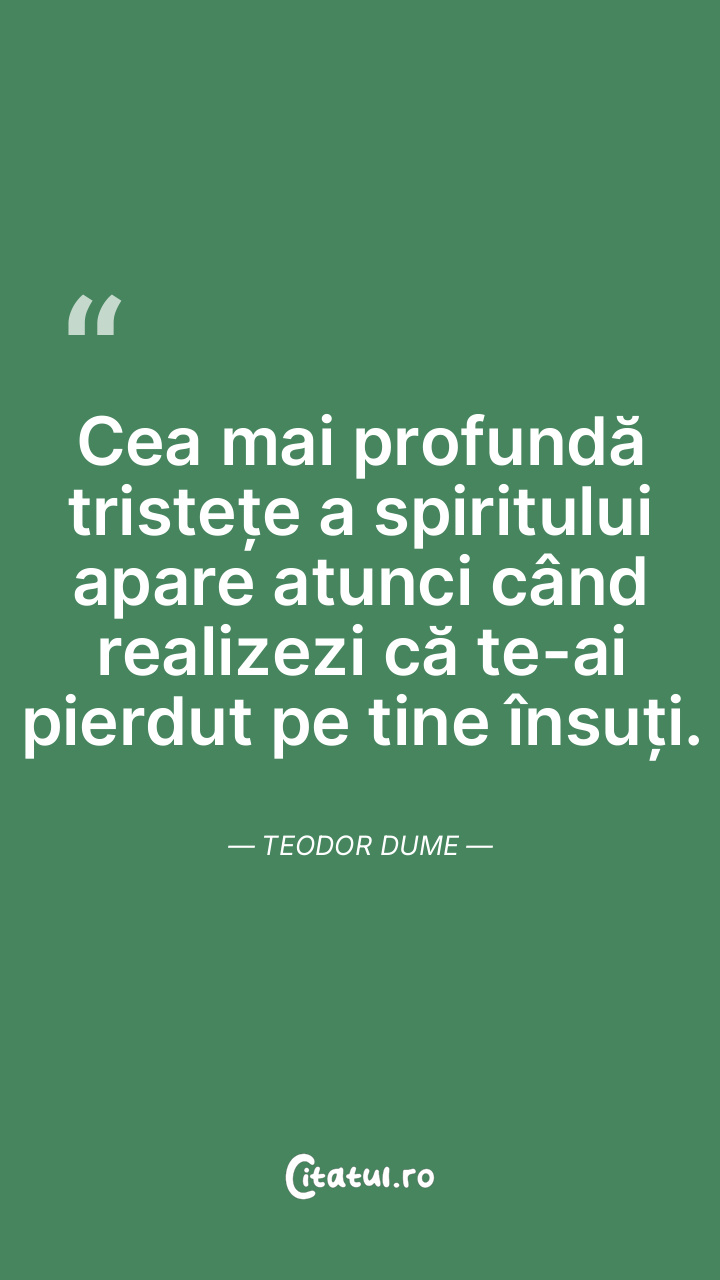 Cea mai profundă tristețe a spiritului apare atunci când realizezi că te-ai pierdut pe tine însuți. Teodor Dume