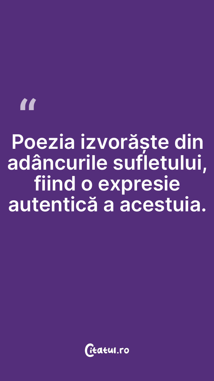 Poezia izvorăște din adâncurile sufletului, fiind o expresie autentică a acestuia.