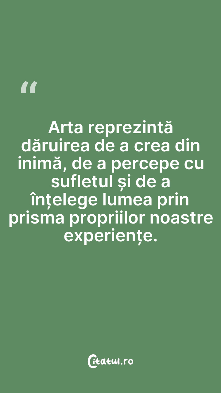 Arta reprezintă dăruirea de a crea din inimă, de a...