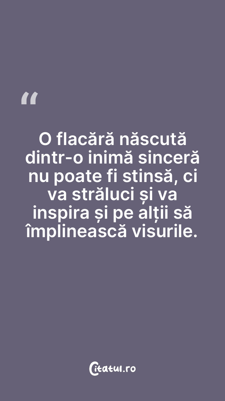O flacără născută dintr-o inimă sinceră nu poate fi stinsă, ci va străluci și va inspira și pe alții să împlinească visurile.